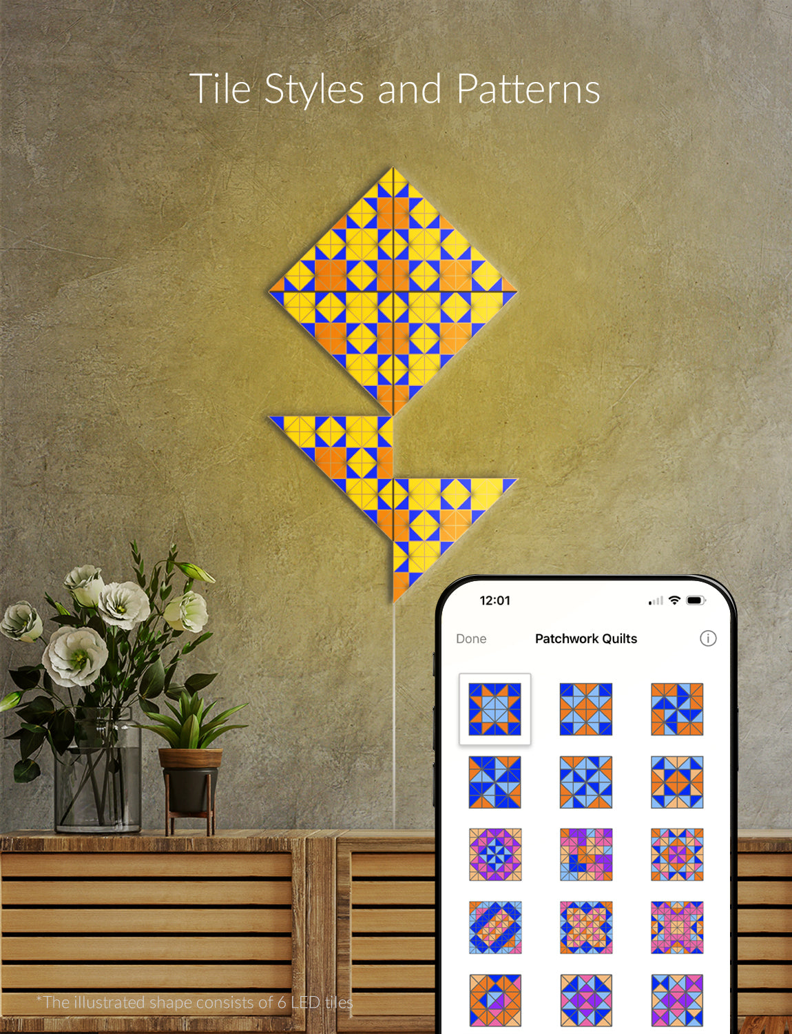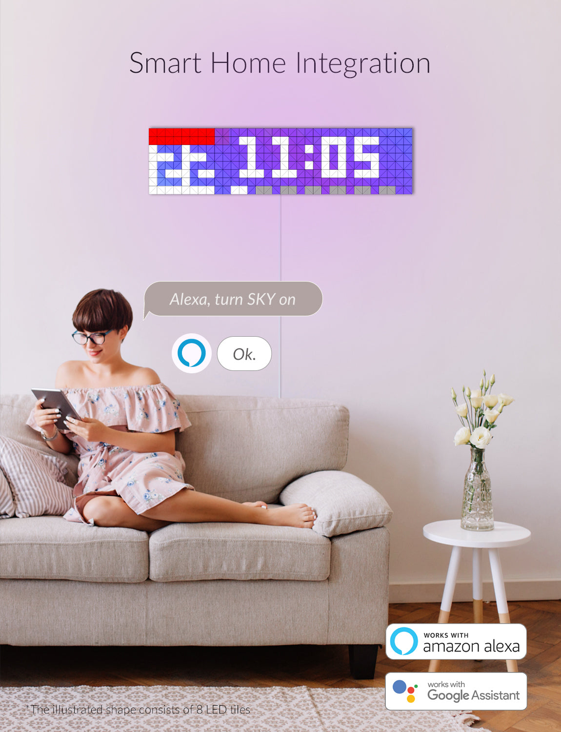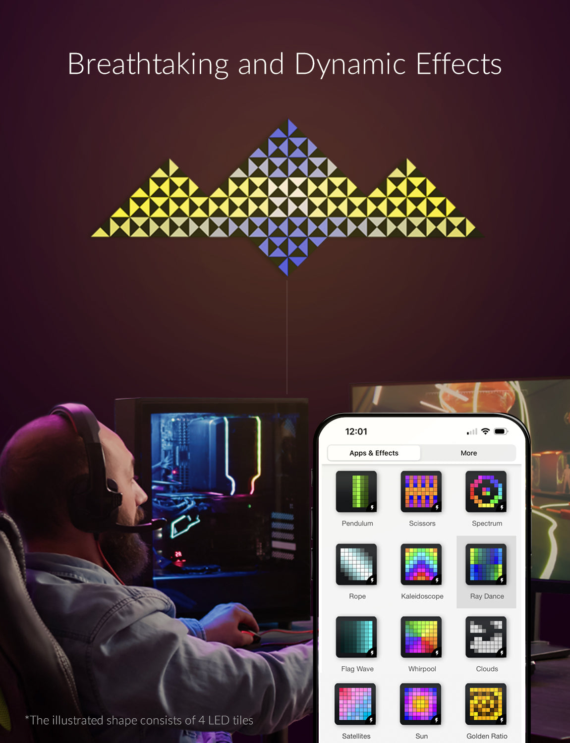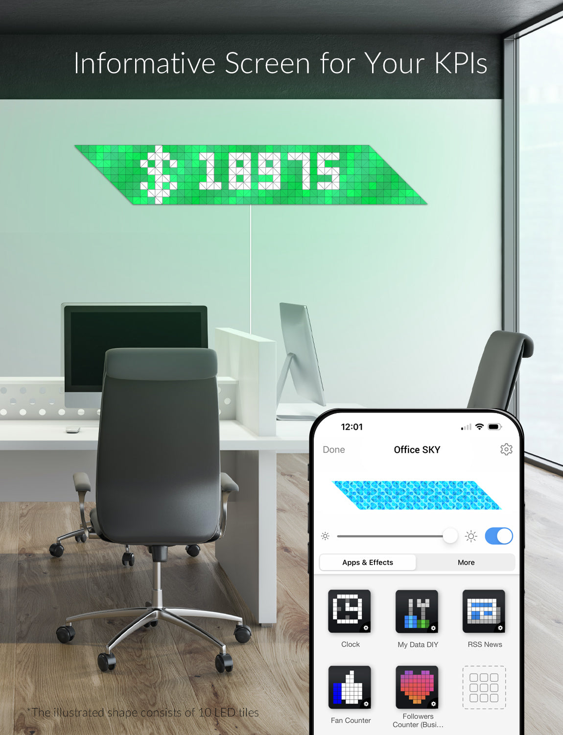 Stained glass-inspired mosaic light surfaces that are aimed to decorate your wall with meaningful shapes, light up your room, brighten up the mood with breathtaking visuals, and motivate with social media counters, sales figures, and more. The World's most versatile smart lighting product ever created.